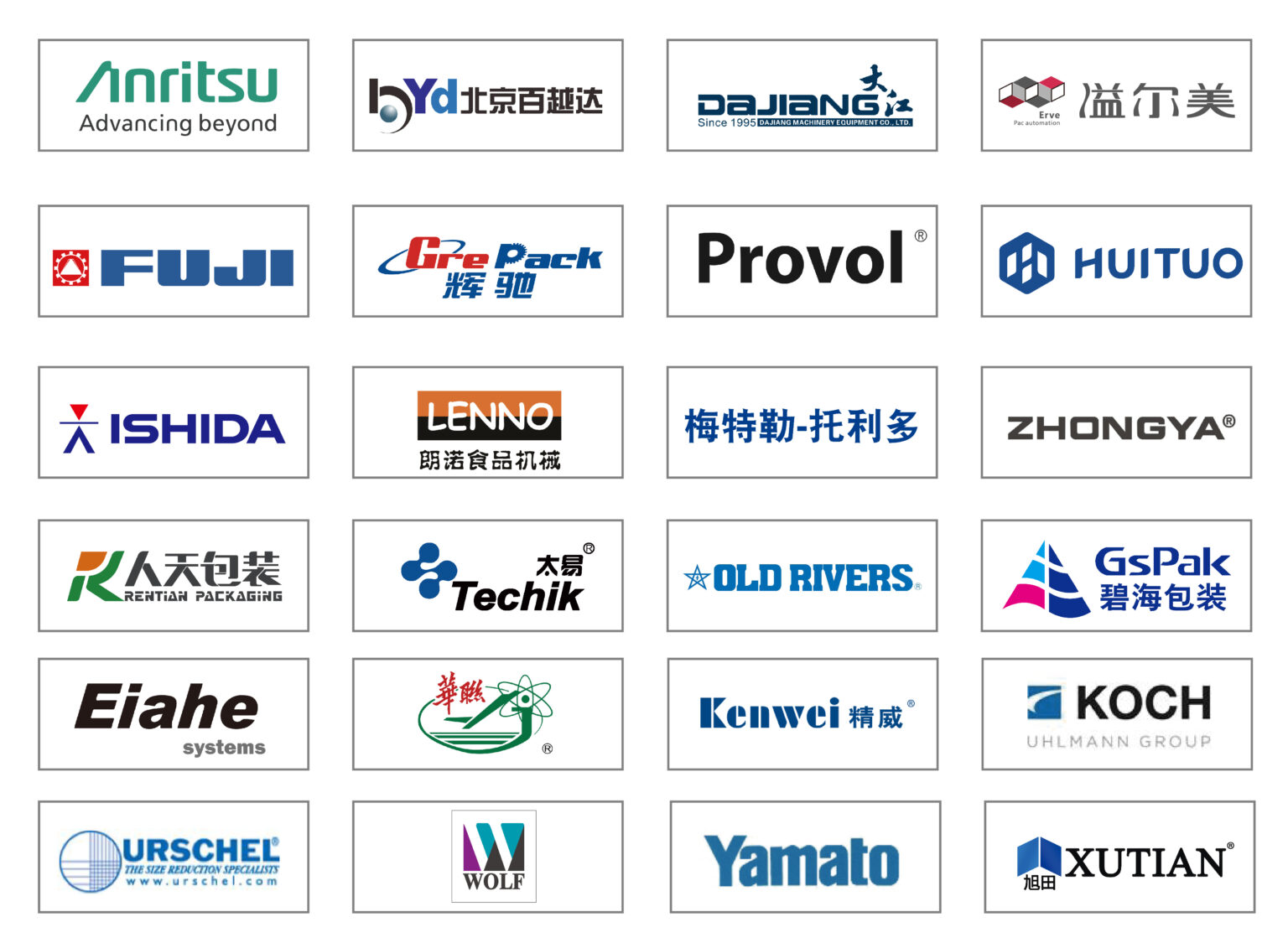 食品加工机械、液体加工设备、称重及计量设备、印刷标签科技等。