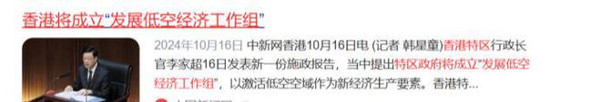 香港特区政府也着手成立 “发展低空经济工作组”,