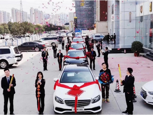 记者在看车过程中,适逢有几位车主正在进行交车仪式,现场氛围喜气洋洋,客户经理告诉记者,在腾发名车广场购车的顾客,在交车前我们会进行一次面访,同时也会送出一些精美礼品,合影拍照记录开心时刻,给客户一段完整、开心的购车体验。