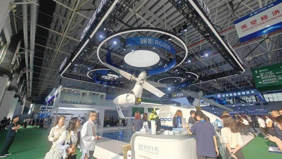 在低空经济领域,货运有人/无人航空器的发展也不可小觑,甚至有后来居上之势。本届航展上,多家企业展示了多种多样的低空货运航空器。与小鹏汇天展台毗邻的联合飞机公司展台,硕大的镧影R6000占据中心位置。
